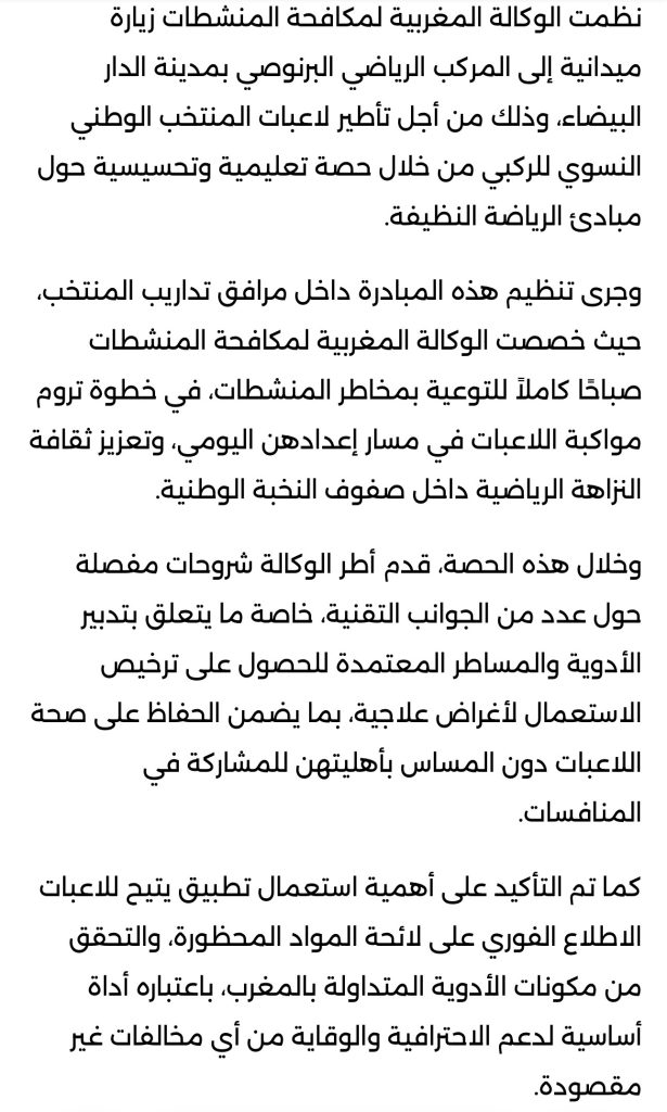 العمق: الوكالة المغربية لمكافحة المنشطات تؤطر منتخب الركبي النسوي
