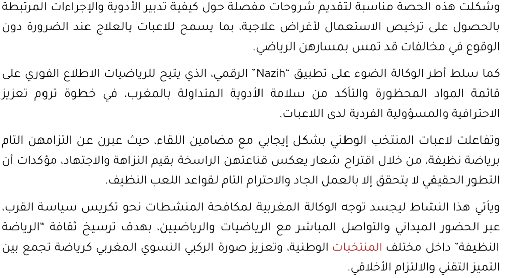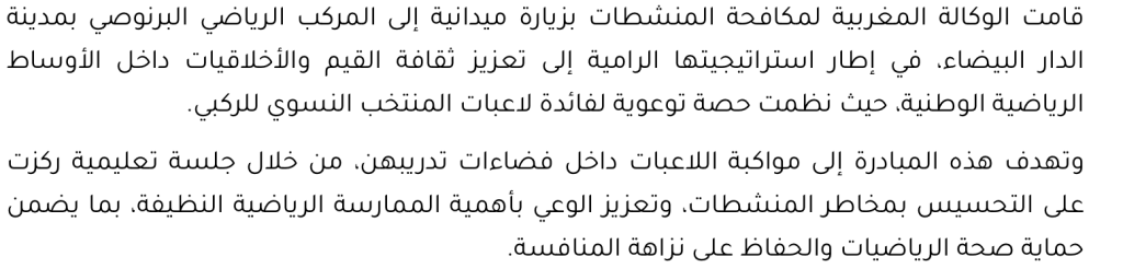 فبراير:وكالة مكافحة المنشطات تزور منتخب الركبي النسوي