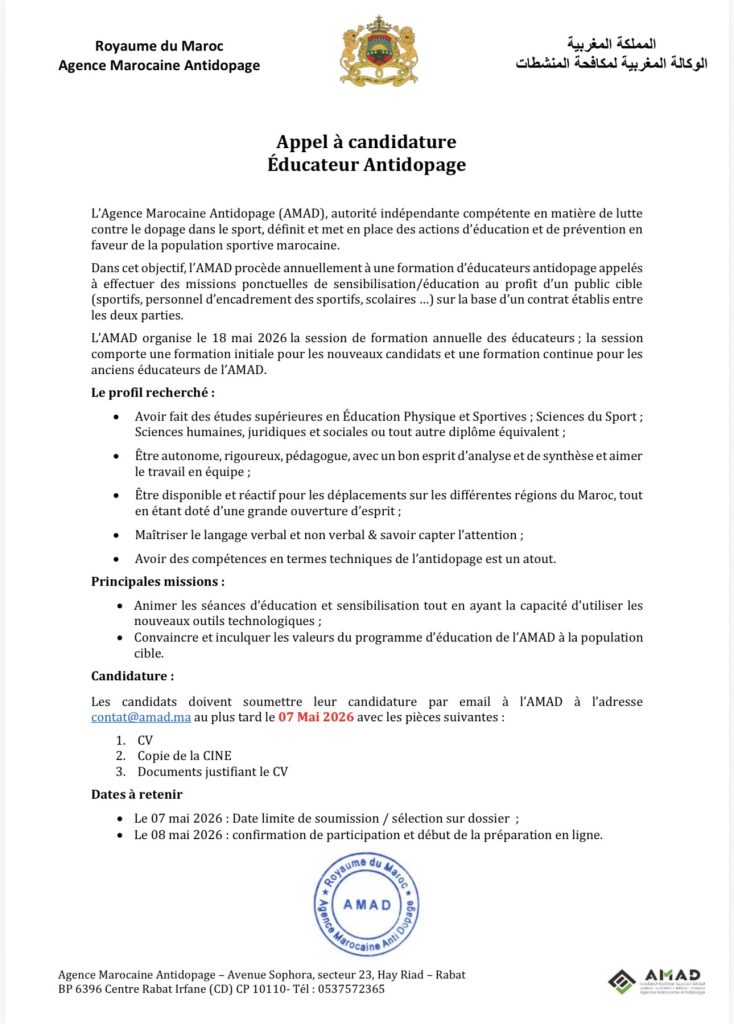 Appel à candidature Éducateur Antidopage