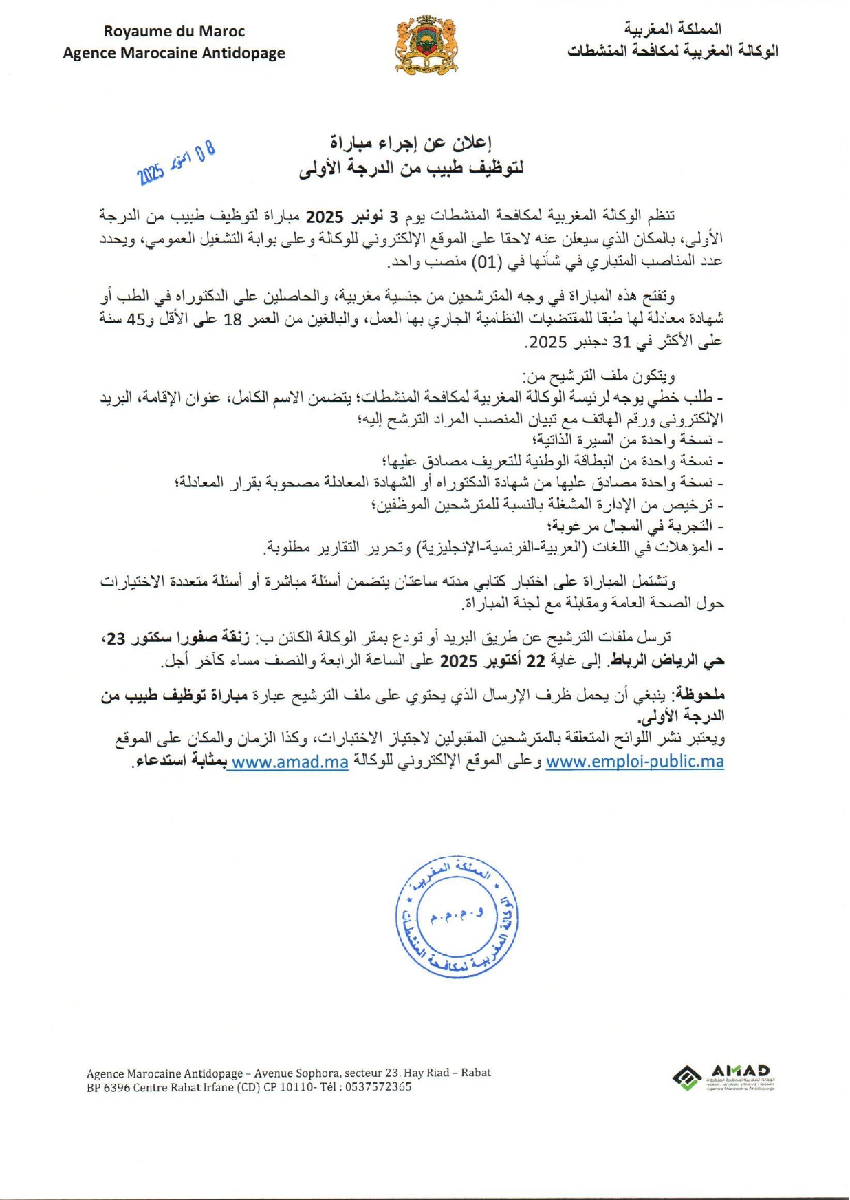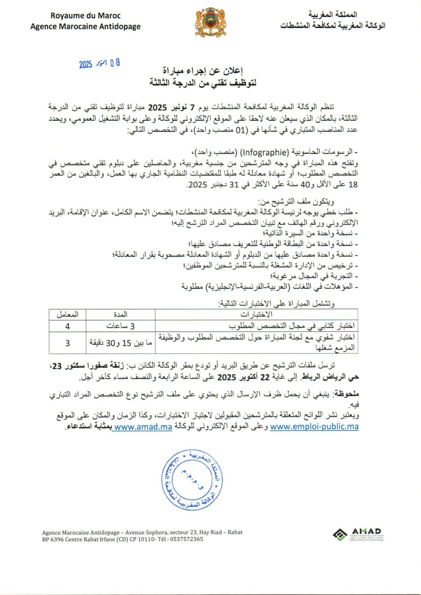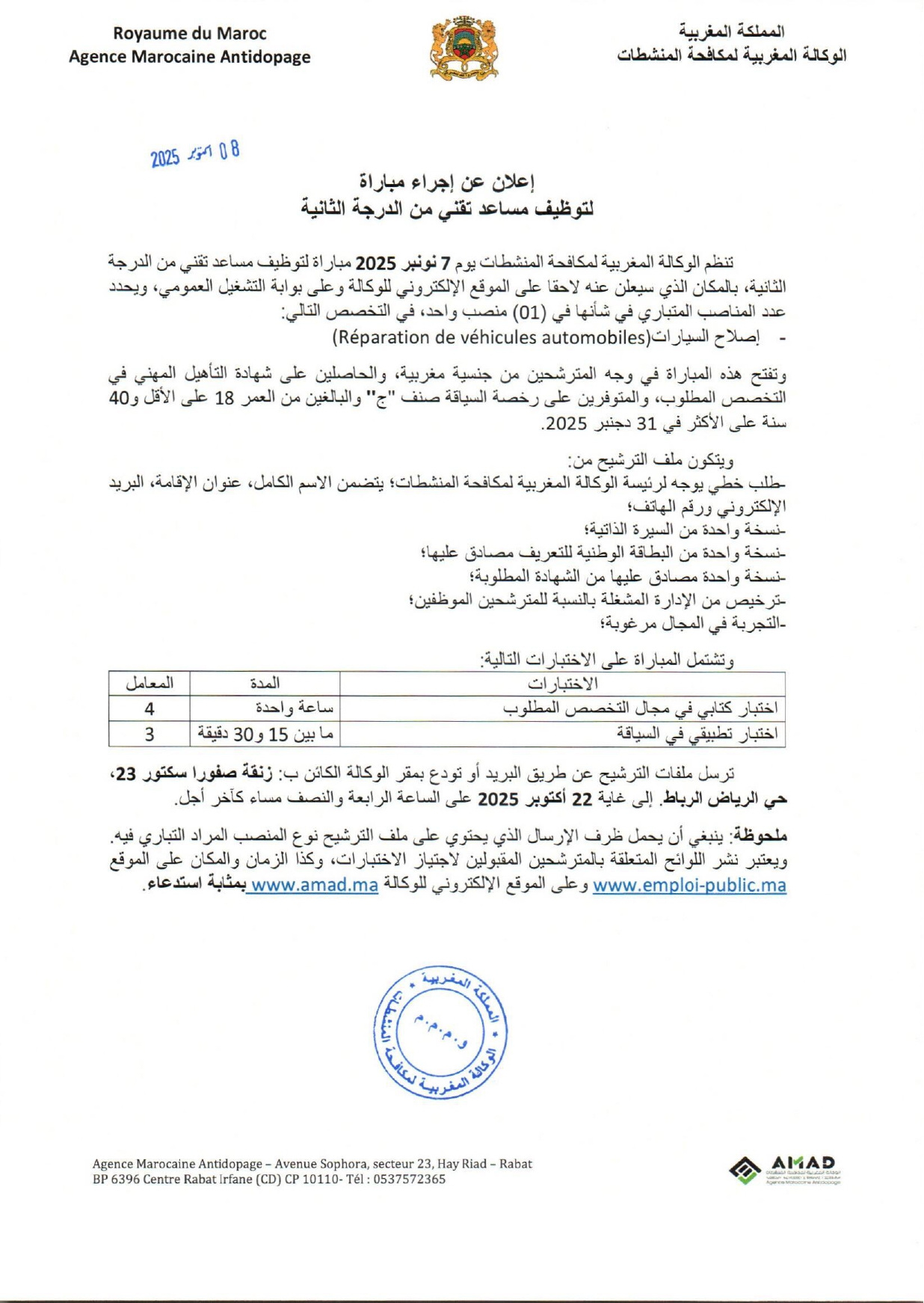 Avis de concours de recrutement au titre de l’année 2025