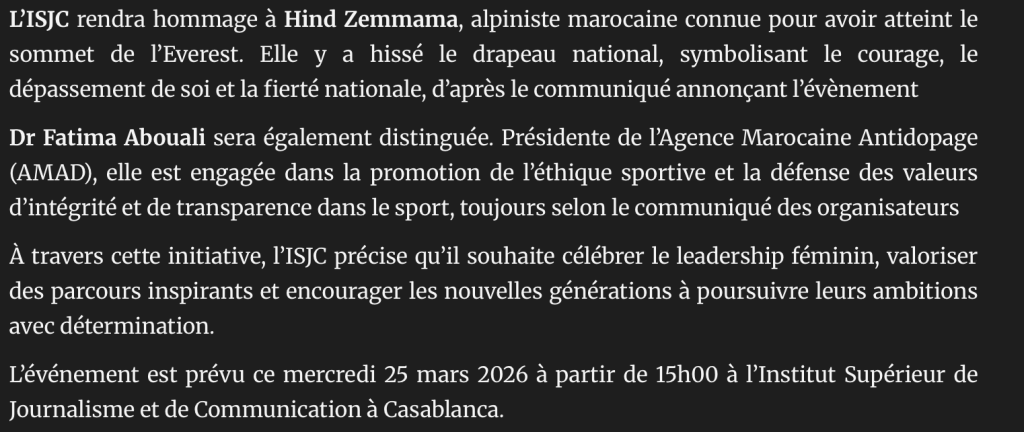 L’Opinion : Hommage : l’ISJC distingue deux figures féminines à l’occasion de la Journée internationale des droits des femmes
