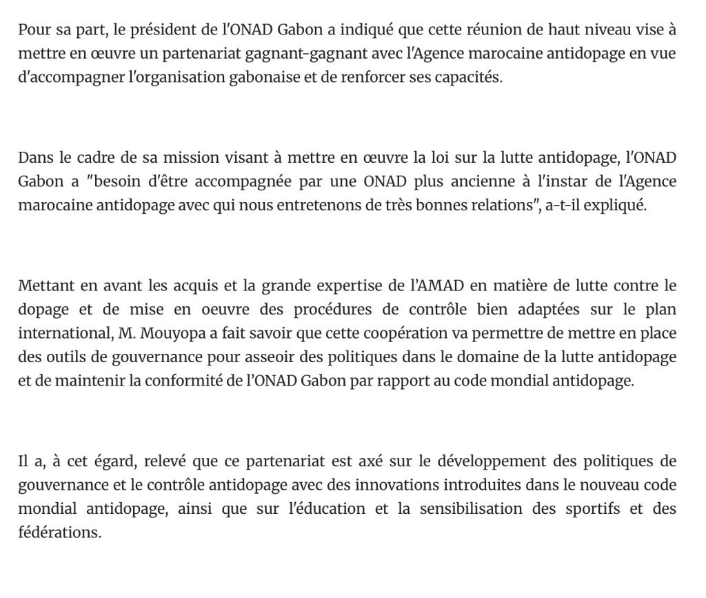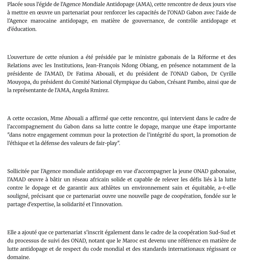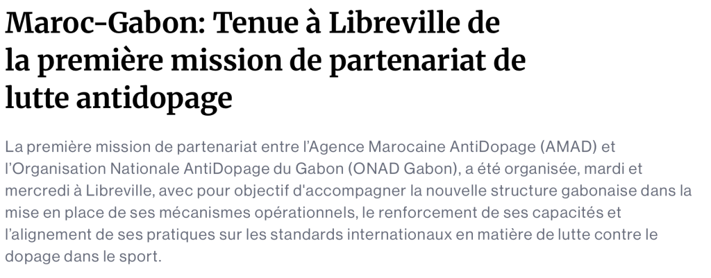 L’Opinion / Maroc-Gabon: Tenue à Libreville de la première mission de partenariat de lutte antidopage