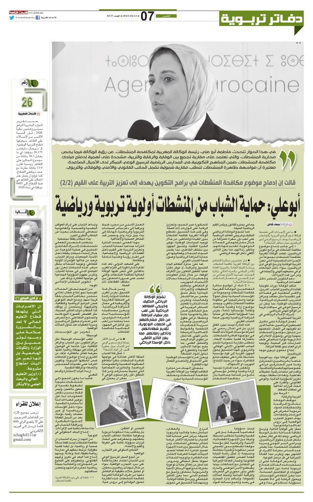 Abouali : La protection des jeunes contre le dopage est une priorité éducative et sportive