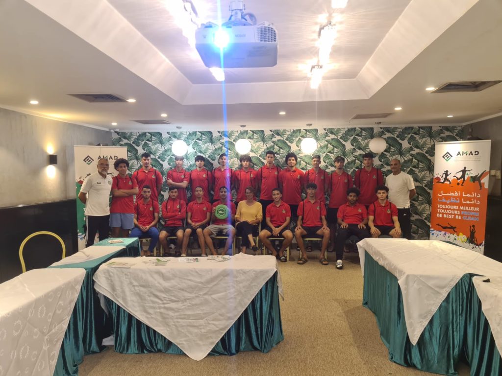 À l’occasion du Championnat du Monde U17 de handball, une séance de sensibilisation a été organisée par l’AMAD le 23 octobre 2025 à l’hôtel Diwan de Casablanca, à l’attention de l’équipe nationale.